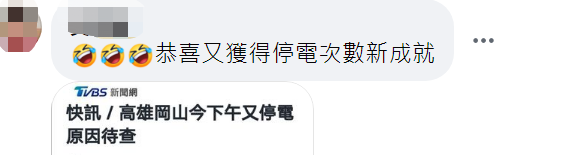 對於蔡英文今日還在蹭俄烏局勢熱度,有島內網友想起全台上週大停電諷刺道:台灣地區領導人真得很好當,缺電也沒事,啥都不關她的事。↓