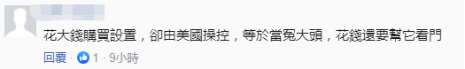 “美國的看門狗系統?”有網友質疑,“花大錢購買設置,卻由美國操控,等於當冤大頭,花錢還要幫它看門。”