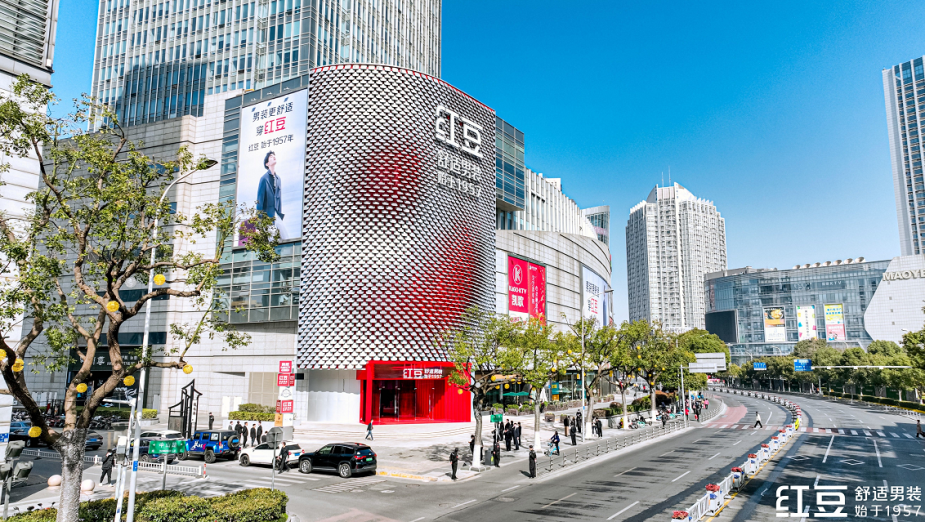 今年2月,紅豆男裝第六代門店——1000平米的無錫中山路紅豆男裝超級旗艦店揭幕,門店由法國設計師托馬斯傾力打造。作為全新概念的旗艦店,別具特色的“中國紅”門頭採用35米高、68根龍骨,2680個銀色葉片組成,內部陳列上,展示了數字經濟時代的消費場景,及企業在數字經濟方面的快速發展和積極實踐。“從Logo到門頭,乃至陳列等等,一切細節都生動闡釋了紅豆的個性、調性和定位,詮釋了紅豆打造‘舒適經典男裝’的極致追求。”發佈會上,托馬斯這樣解讀紅豆男裝舒適空間設計的內涵。