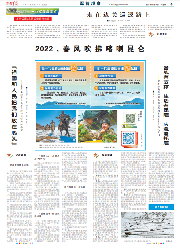 讓他們內心感覺越來越暖的變化,是這些年越來越完善的高原後勤保障——他們吃得更有營養,穿得更輕便,呼吸更加順暢,巡邏戍邊也更有力量。
