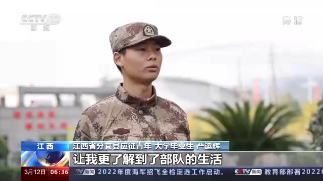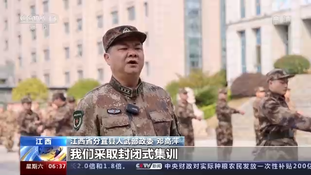 *江西省分宜縣人武部政委 鄧高萍:*我們採取封閉式集訓、連隊化管理、全過程考核,讓預定新兵堅定入伍信心、提高適應能力,縮短適應週期。