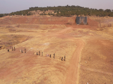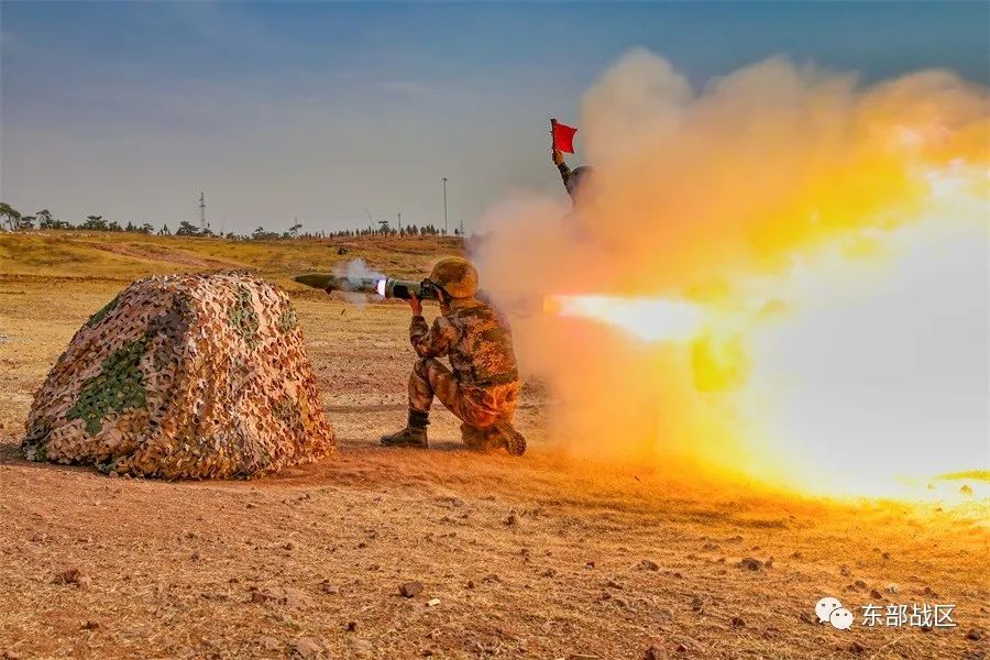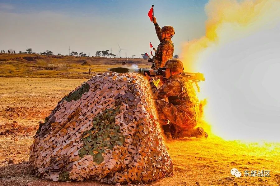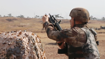 射擊地線前上士鄭攀蹲坐在掩體旁