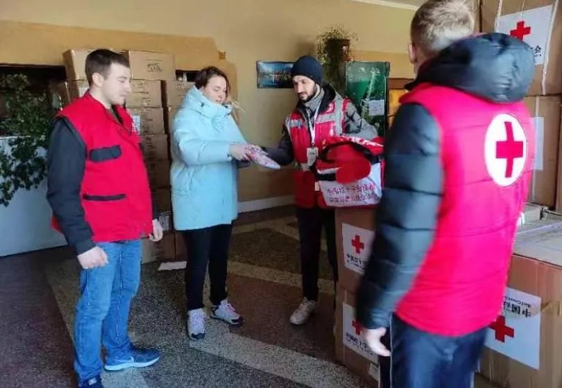 當地時間3月12日上午,烏克蘭紅十字會已經在烏克蘭切爾諾夫策市的倉庫內分發由中國紅十字會捐贈的第一批人道主義物資 ,主要包括毛毯、防潮墊、毛巾、餐具、水桶、手電 等物資。這些物資會優先發給最需要救助的流離失所者 。