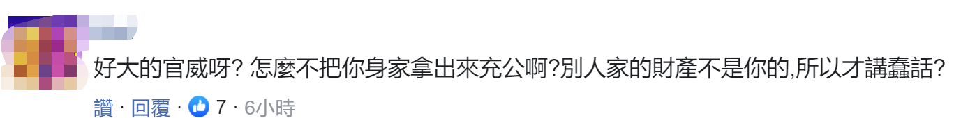 更有網友諷刺,“好大的官威呀? 怎麼不把你身家拿出來充公啊?別人家的財產不是你的,所以才講蠢話?”↓