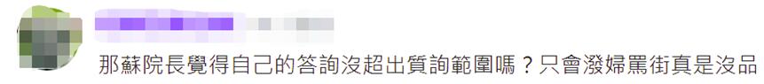 有網友問:“那‘蘇院長’覺得自己的答詢沒超出質詢範圍嗎?只會潑婦罵街真是沒品。”↓