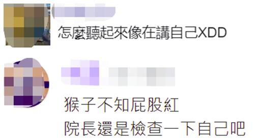 有網友説:“怎麼聽起來像在講自己”、“猴子不知屁股紅,‘院長’還是檢查一下自己吧。”↓