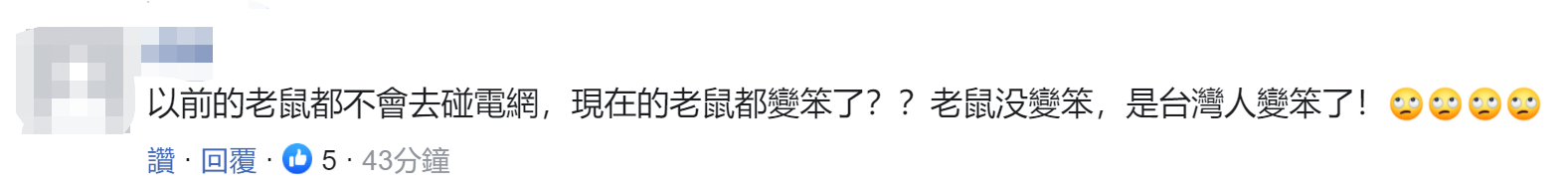 另有網友坦言,“以前的老鼠都不會去碰電網,現在的老鼠都變笨了?老鼠沒變笨,是台灣人變笨了!”↓
