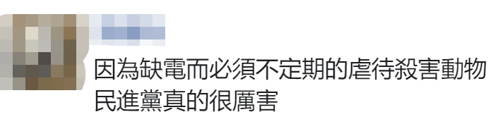 還有網友直斥,“因為缺電而必須不定期的虐待殺害動物,民進黨真的‘很厲害’”。↓