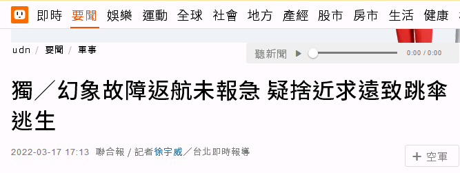 報道稱,台空軍14日在事故調查發佈會上表示,該戰機墜毀前曾“呼叫故障”,並採取“直線返場方式”,因此飛行員跳傘是經過“充分準備”,在處置上是“最好的示範”。但知情者透露,該機飛行員在返航時遇到滑油警告燈亮,但地面戰管中心卻奇怪地沒有按照“緊急情況時以最近備降場着陸”的優先原則,捨棄在較近的台南基地降落,而引導到航程多出46公里的志航基地,最終導致動力不足的該機在半路墜毀。