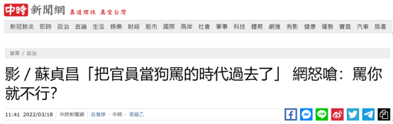 蘇貞昌聲稱“把官員當狗罵的時代該過去了”,台網友吐槽:只有綠營能罵人