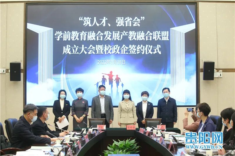3月18日,“築人才·強省會”學前教育融合發展產教融合聯盟成立大會暨校政企簽約儀式舉行,標誌着貴陽市“5+N”產教融合聯盟(數字科技、學前教育、健康醫藥、中高端製造、數據中心5個產教聯盟)建設邁出了第一步,開創了貴陽貴安“政校企合作、產研學共贏”新局面。