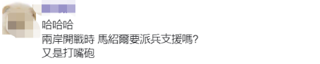 有網友質疑,“兩岸開戰時,馬紹爾要派兵支援嗎?又是打嘴炮。”