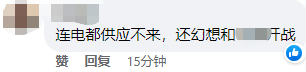 還有網友諷刺,“連電都供應不來,還幻想和大陸開戰”。