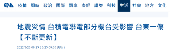 報道提到,(台灣)南部科學園區通報,“羣創”(台灣羣創光電公司)有部分機台設備當機(死機),但無人員疏散,台南與高雄園區營運正常。台積電表示,大部分廠區都沒有達疏散標準,只有零星疏散,部分機台設備受影響,後續廠區環境巡檢無異常。“聯電”(台灣聯華電子公司)也表示,廠區都未達到疏散標準,部分機台設備因自我保護當機。