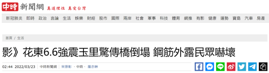 【環球網報道】據台灣“中時新聞網”等台媒消息,台灣花蓮、台東地區今天(23日)凌晨接連發生多次地震,其中兩次地震震級在6級以上,分別是發生在1時41分的6.6級和1時43分的6.1級地震,導致花蓮一處正在施工橋樑橋面出現斷裂垮塌情況,台氣象部門稱,不排除還會有5.5級以上餘震,自1973年起,該地區周邊都沒有出現超過6級以上的地震,打破近50年的紀錄。