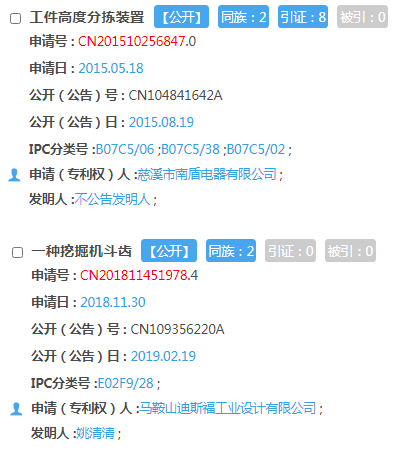 另一項受讓取得發明專利為“一種挖掘機鬥齒”,招股書披露的申請日為2020年9月,但是根據國家知識產權局專利檢索信息顯示,此項專利的申請日為2018年11月、公開日為2019年2月,這指向拓山重工是否存在信息披露差錯。值得關注的是,此項專利的申請人“馬鞍山迪斯福工業設計有限公司”成立於2018年11月,目前也無員工社保繳納記錄。