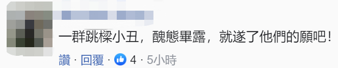 更有網友無奈的説,“一羣跳樑小醜,醜態畢露,就遂了他們的願吧!”