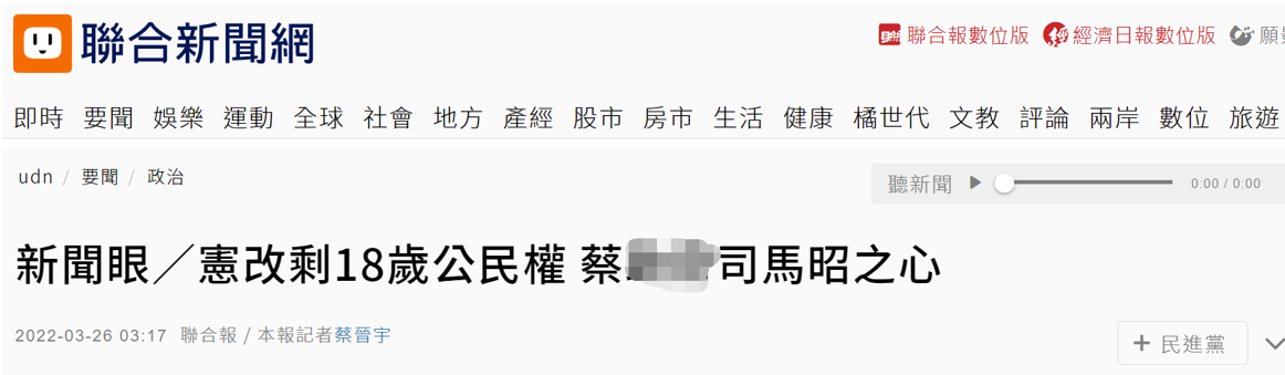 民進黨推“修憲”增“18歲公民投票權”,台媒狠批蔡英文“司馬昭之心”!