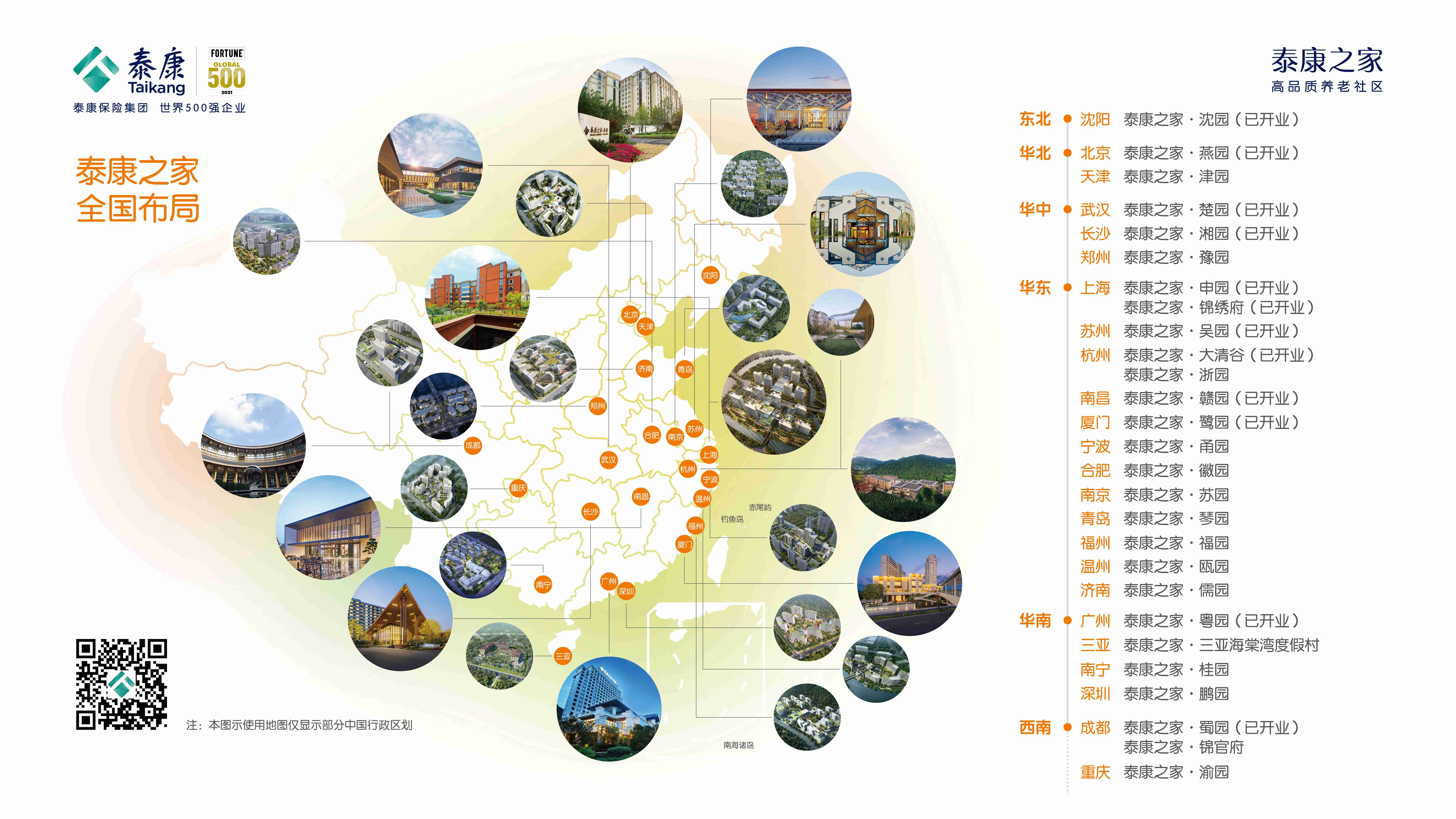 自2007年投身醫養事業,泰康立志發起一場養老革命:一是養老生活方式的革命,就是要把養老變為享老;第二是提升效率的革命,包括籌資效率和實體效率的提升,讓越來越多的長輩過上泰康之家這樣美好的退休生活。目前,泰康之家養老社區已實現全國24城27家養老社區佈局,服務居民超6000人,其中北京燕園、上海申園、上海錦繡府、廣州粵園、武漢楚園、蘇州吳園、成都蜀園、杭州大清谷、南昌贛園、瀋陽沈園、長沙湘園、廈門鷺園11地12家醫養社區已開業運營,泰康之家以中國高品質醫養連鎖第一品牌持續領跑市場。
