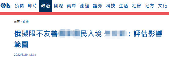 台當局回應俄擬限制“不友好”地區人員入境:將評估影響範圍,島內網友吐槽