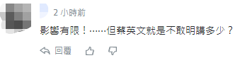 也有網友質疑台外事部門的這番説辭,“影響有限⋯⋯但蔡英文就是不敢明講(影響)多少?”↓