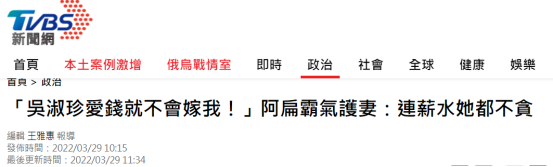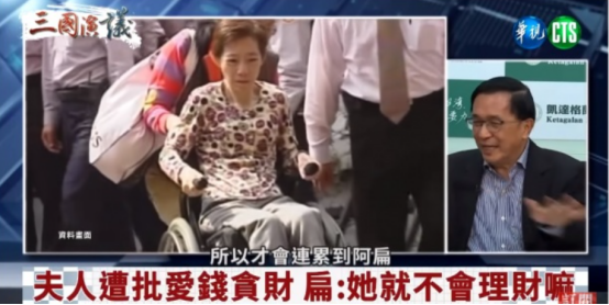 台灣TVBS新聞網稱,陳水扁節目中談到“扁案”(陳水扁家族弊案)時説,有人攻擊自己的太太吳淑珍,認為家中財務是她在管理,因為她太愛錢、貪錢才會連累到他。