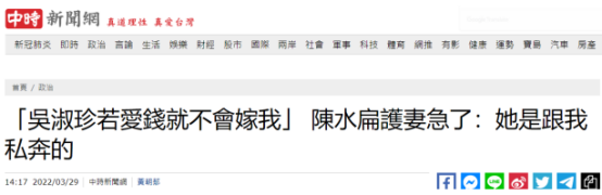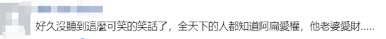 對於陳水扁這次的“霸氣護妻”,有島內網友笑了:“好久沒聽到這麼可笑的笑話了,全天下的人都知道阿扁愛權,他老婆愛財……”↓