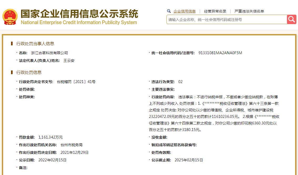 古茗奶茶被曝偷逃税款超2322萬 被台州市税務局處罰