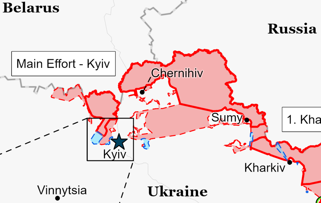 當時的美國媒體分析説,基輔 - 切爾尼戈夫的高速公路,是一條139公里長的四車道高速公路,如果順利,俄羅斯軍隊可能會在越過邊境後的幾個小時內威脅到烏克蘭首都。