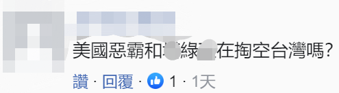 對此,有島內網友斥責,“美國惡霸和綠營在掏空台灣嗎?”↓