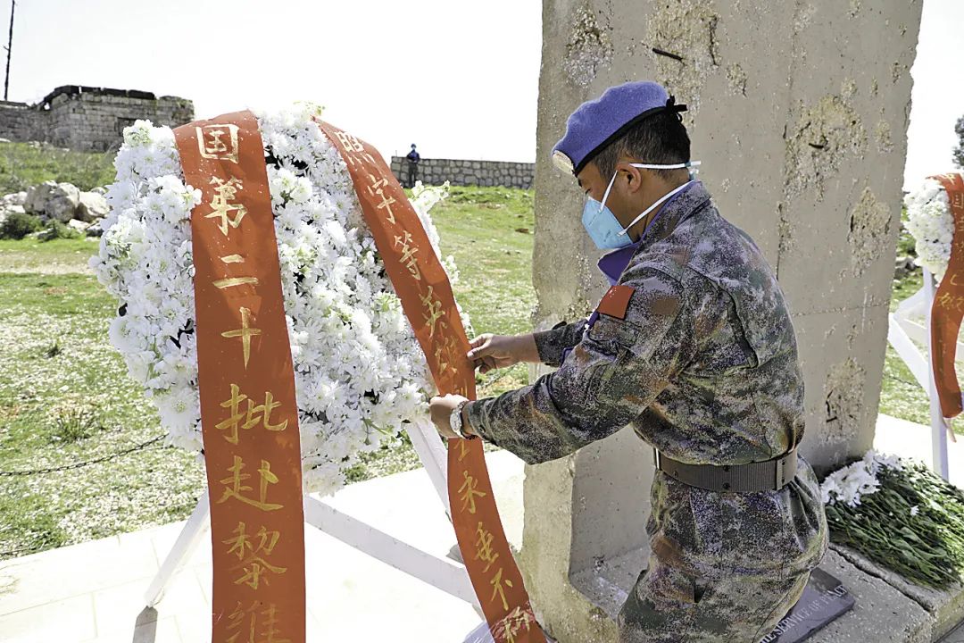 解放軍報貝魯特4月4日電 莊小好、梁裕源報道:當地時間4月4日,中國第20批赴黎巴嫩維和部隊官兵代表、聯合國軍事觀察員、聯黎部隊參謀軍官代表以及中國駐黎巴嫩大使錢敏堅等,來到杜照宇烈士犧牲地希亞姆鎮,組織開展“緬懷藍盔忠魂,追尋英雄初心”清明節祭奠英烈活動,深切緬懷杜照宇等維和英烈,寄託對英烈的哀思,表達維護世界和平的堅定決心。