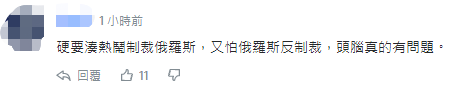 也有網友表示,“硬要湊熱鬧制裁俄羅斯,又怕俄羅斯反制裁,頭腦真的有問題”。↓