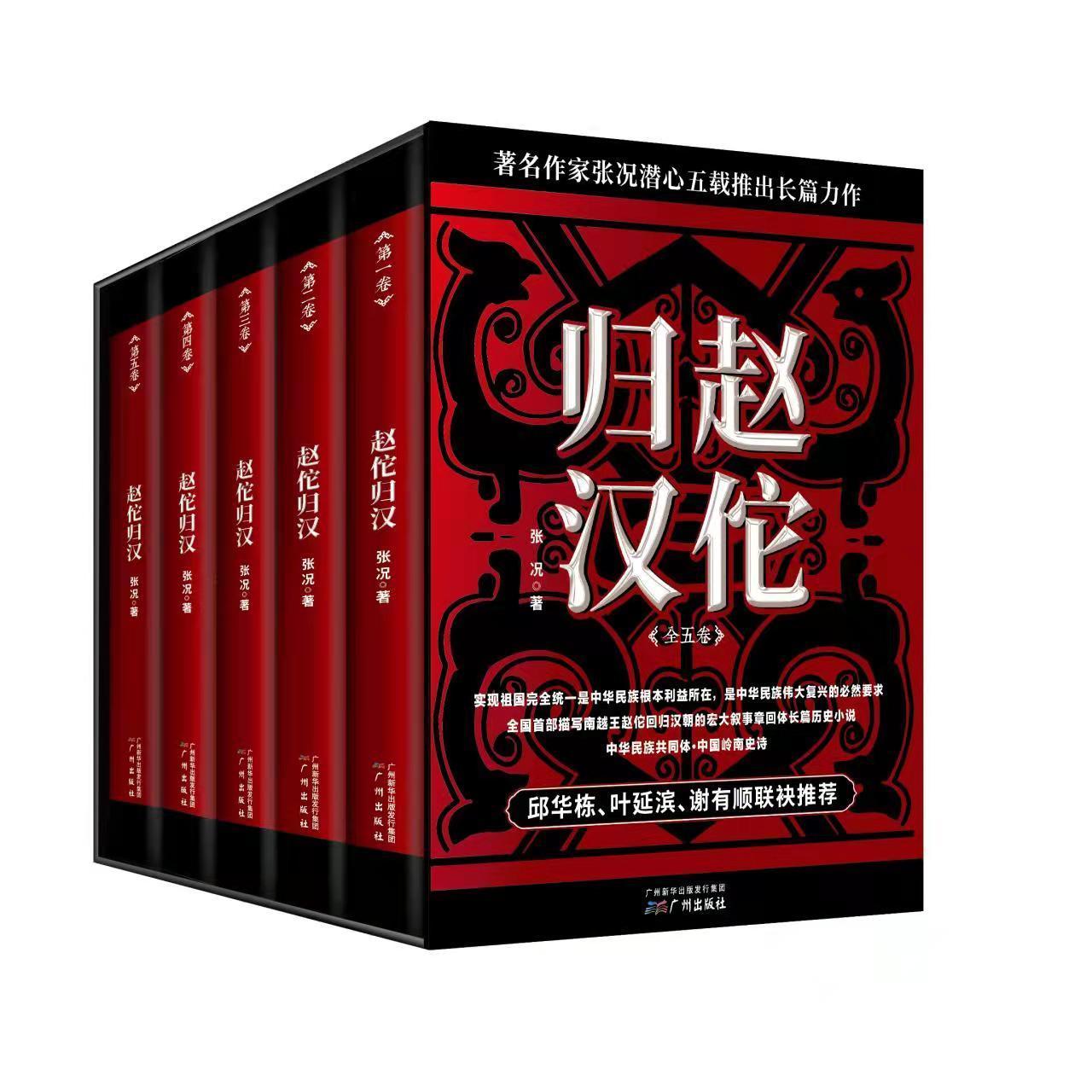 引言:《趙佗歸漢》是一部長篇歷史小説,五卷本,廣州出版社2021年11月版。是著名作家張況披瀝五載心血奉獻出的又一部文學精品力作,將一個轟轟烈烈的輝煌而燃燒的時代畫卷徐徐展現在我們面前。
