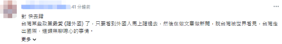 對此,有島內網友潑冷水並諷刺稱,“對,快去蹭,台灣某些政黨(指民進黨)最愛蹭外國(人),只要看到外國人馬上蹭過去,然後再做文章做新聞,説‘台灣被世界看見’這類無聊噁心的事情”。↓