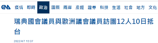 台外事部門發言人歐江安聲稱,該竄訪團由瑞典國會議員、“台灣-瑞典國會議員協會”主席歐柏莉(Boriana Aberg)與瑞典籍歐洲議會議員魏莫斯(Charlie Weimers)率領,成員包括瑞典國會副議長呂謝婷(Kerstin Lundgren)、瑞典國會謝必揚議員(Bjorn Soder)等共12人。
