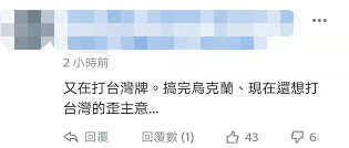消息傳到島內,不少網友議論紛紛。有人直言,美國又在打台灣牌,“搞完烏克蘭,現在還想打台灣的歪主意。”↓