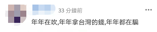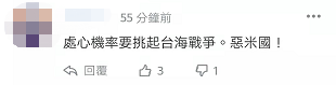 還有網友批評美國“處心積慮要挑起台海戰爭,惡美國!”有人説“年年在吹,年年拿台灣的錢,年年都在騙”。↓
