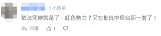 還有人説,“依法究查就是了,‘紅色勢力’?又在扯‘抗中保台’那一套了!”↓