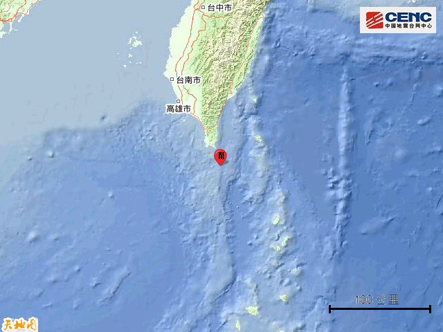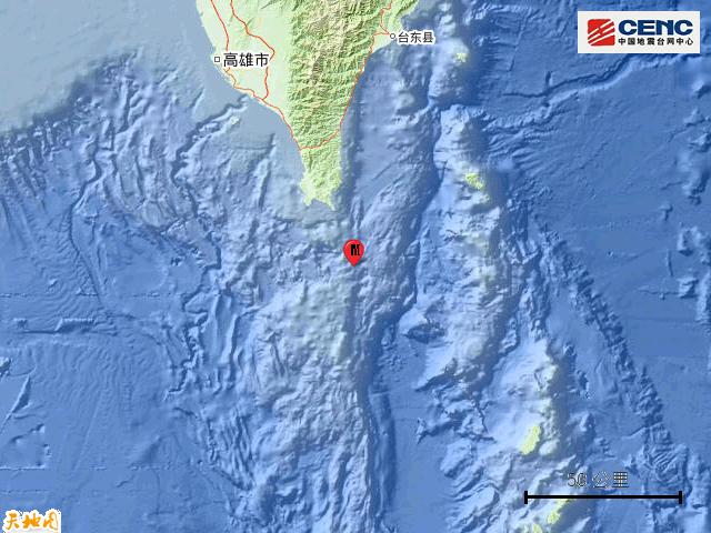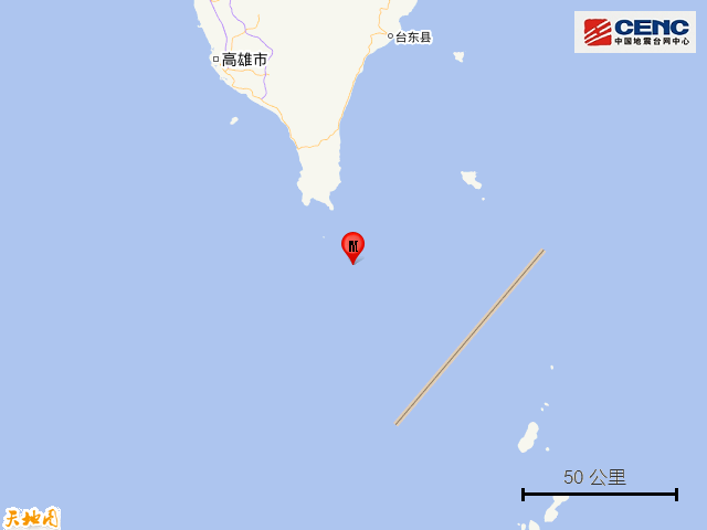台灣屏東縣海域發生5.1級地震,震源深度18千米