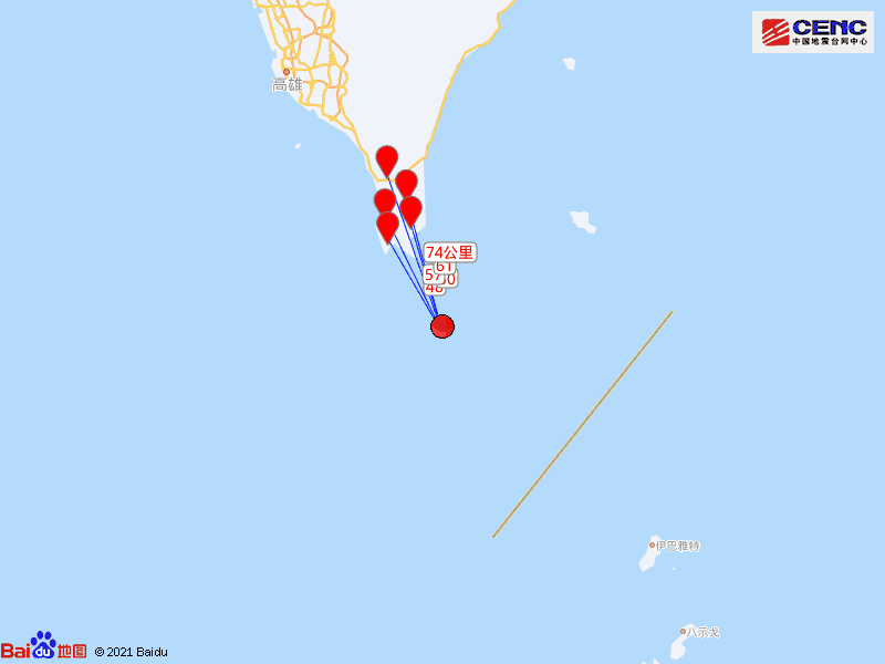 速報參數: 據中國地震台網正式測定,4月11日21時47分在台灣屏東縣海域發生5.1級地震,震源深度18千米,震中位於北緯21.62度,東經120.97度,距台灣島約32公里。
