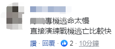 還有網友諷刺,“蔡英文專機逃命太慢,直接演練戰機逃亡比較快”。↓