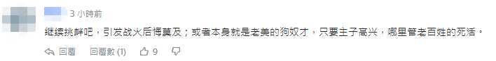 更有網友怒斥,“(民進黨當局)繼續挑釁吧,引發戰火後悔莫及;或者本身就是老美的狗奴才,只要主子高興,哪裏管老百姓的死活”。↓
