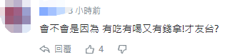 有網友質疑,“會不會是因為有吃有喝又有錢拿!才‘友台’?”↓