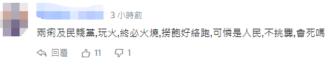還有網友直斥,“三立及民進黨,玩火,終必自燒,撈飽好絡跑(逃跑),可憐是島內民眾,不挑釁,會死嗎?”↓