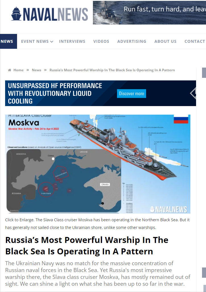 美國《海軍新聞》網站暗示了“莫斯科”號遭伏擊的可能。報道稱,自從俄烏衝突爆發後,“莫斯科”號率領的俄黑海艦隊就開始執行對烏克蘭南部海域的封鎖任務。“莫斯科”號並沒有直接參與進攻,主要藉助艦載遠程防空系統為該地區的其他俄軍部隊提供防空掩護。“該艦定期往返於敖德薩附近海域與克里米亞的母港塞瓦斯托波爾之間”。