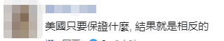還有人表示,“美國只有他家的利益考量。”“美國只要保證什麼,結果就是相反的。” ↓