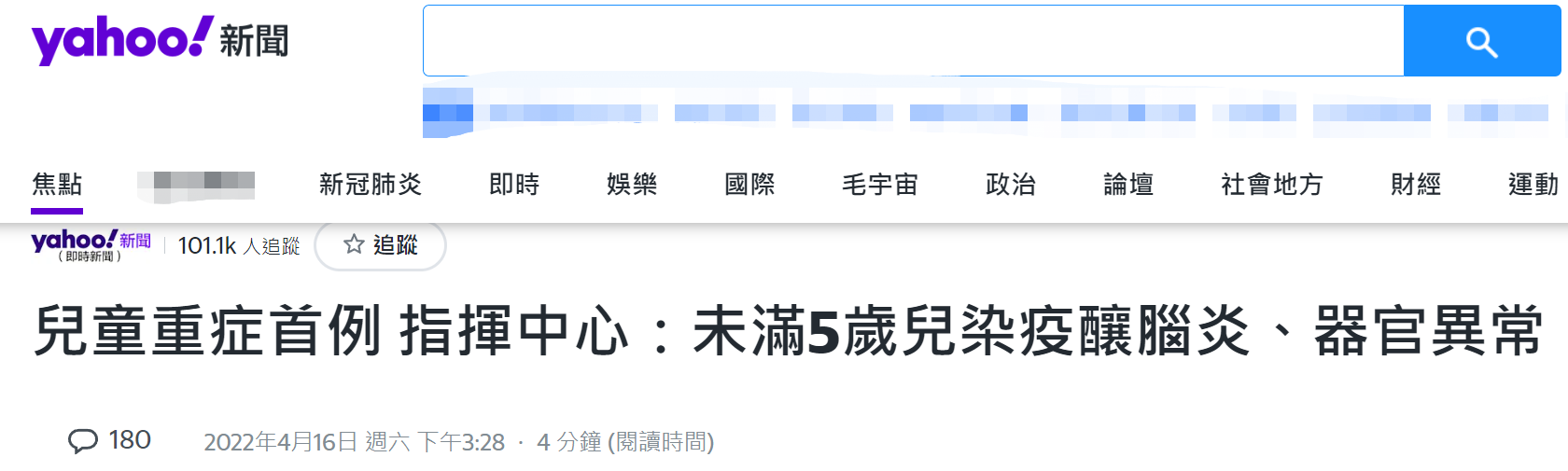 台灣“雅虎新聞網”提到,新北市衞生局今天下午也説明該兒童重症確診病例的處理過程。新北衞生局稱,1名新竹確診病例的2歲兒子,身體不適就醫時採檢確診,因病程進展非常快速,已請“衞福部”雙和醫院、台大醫院小兒重症團隊進駐,協助專業醫療照護。