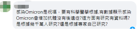 在蘇一峯的臉書評論區,有人留言問道,“感染奧密克戎是祝福,要有科學醫學根據。有數據顯示感染奧密克戎會增加抗體沒有後遺症?這方面有研究有資料嗎?是根據幾千萬人研究?還是根據專家自己研究?”