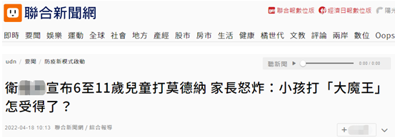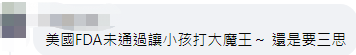 有人説,“美國FDA未通過讓小孩打‘大魔王’(指莫德納疫苗),還是要三思”。↓