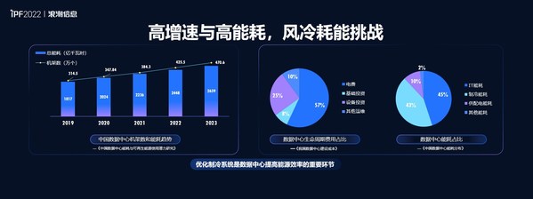 從2019年到2022年,全國數據中心機架數和能耗均有較大幅度的增長,根據相關機構調研,到2023年數據中心耗電量將達到2700億千瓦時,增幅約31.6%。分析數據中心生命週期費用佔比,電費佔比最高達57%,是基礎設施和IT設備投資的近2倍。進一步分析數據中心能耗佔比,製冷系統用電量已與IT設備相當,佔總用電量高達43%。所以,優化製冷系統是數據中心提高能源效率的重要環節。